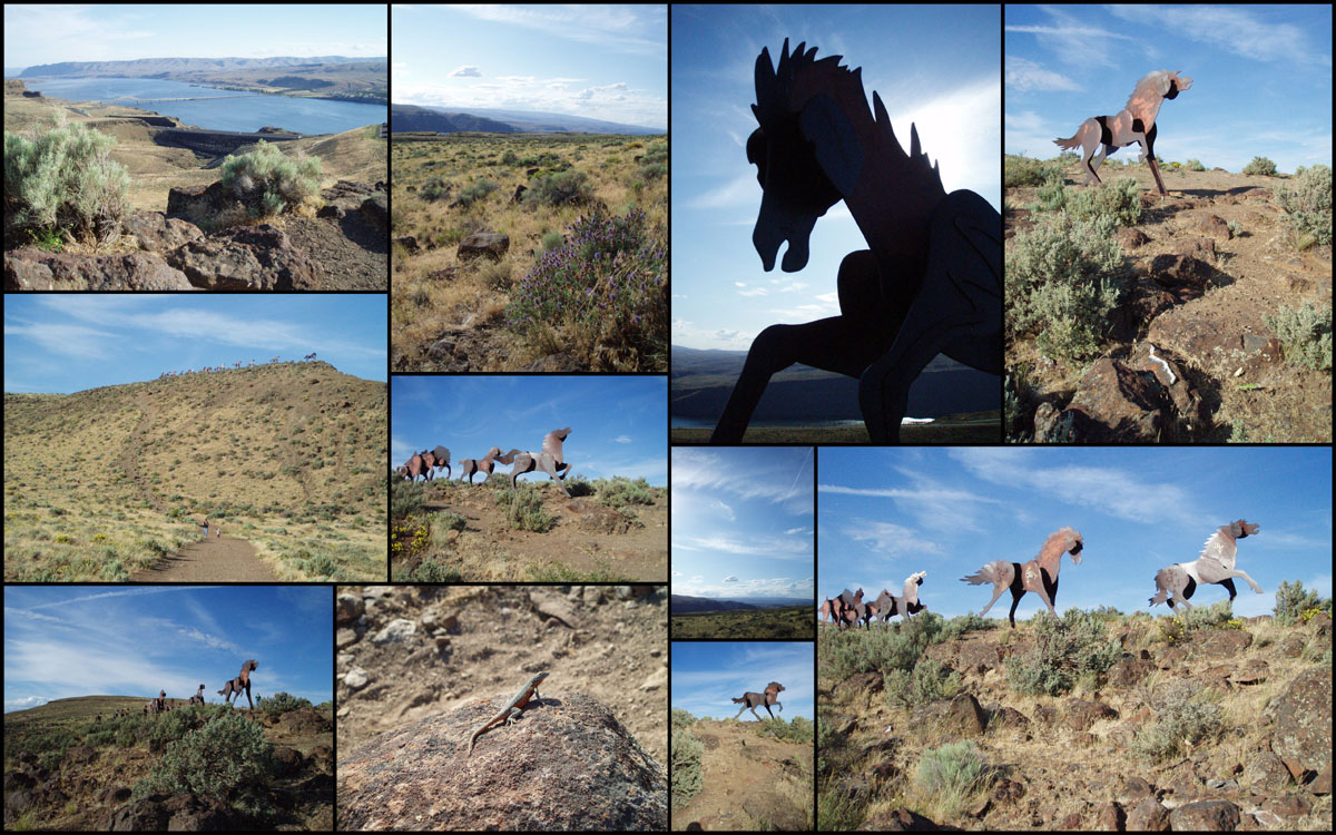 We stopped along highway 90 at a scenic outlook near Vantage, Washington (just west of Lake Moses). We expected a nice view of the bridge & water. We were surprised by the wild mustang monument built on the top of a nearby hill. A (very) steep climb got us closer for a good look at the sculpture and a better view of the water.