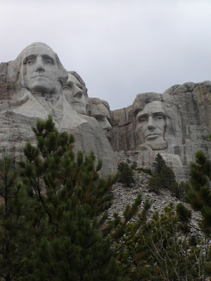 Visited Mount Rushmore today. (Parking is private concession – what’s up with that?!) The rain stopped just as we pulled into the parking lot. Did a self tour down the presidential trail and through the sculptor’s studio. As soon as we got back inside the exhibit hall, the rain started up again. (Again, we were blessed with great timing.) At one of the gift shops, a gentleman who worked as a driller during the monument’s construction was there answering questions and signing books.