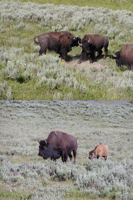 We left Yellowstone this morning. We drove from Lake north to exit via the northeast entrance and the Lamar Valley. I wanted to leave early in the morning while the wildlife might still be active. Well, we had to stop for three (lengthy) bison jams. Several of the Hayden Valley bison decided to park in the middle of the road. And several reckless tourists got so close that we were uncomfortable.