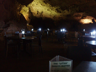 It turns out, we picked the right day to visit. Since yesterday was the annual “Bat Flight Breakfast,” and it was Fee-Free Weekend at several parks around the country, Carlsbad saw over 4,500 visitors yesterday. We heard stories about the wait for the elevators back to the top. Our visit was very un-crowded and nice, and we enjoyed lunch at the almost deserted underground lunchroom.